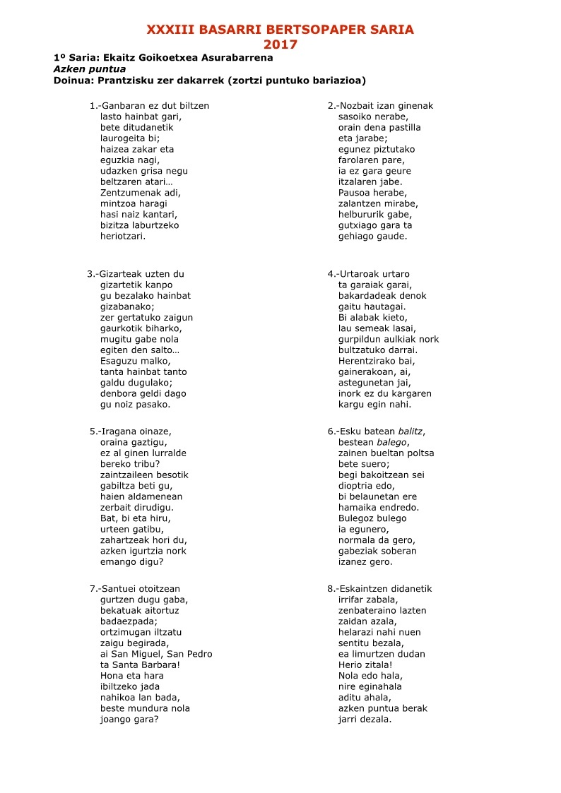 - Agirre, Eñaut. "Hiru adibide berri, emakume bertsolarik beti plazan aritu diren adierazgarri". IN III. Ikergazte: Giza zeintziak eta artea. Baiona: IkerGazte, 2019. https://tinyurl.com/y6gpeh3o ]