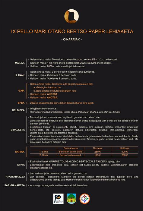 Pello Mari Otaño Bertso-paper Lehiaketa (9. 2023. Zizurkil)