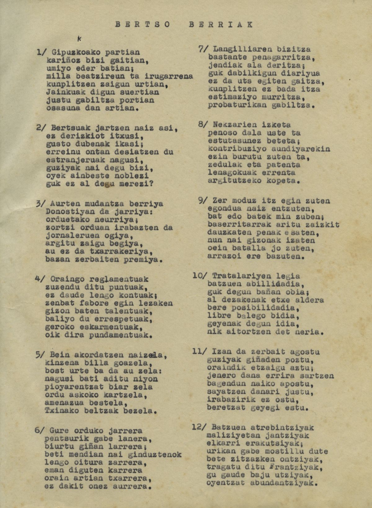 Bertso berriak [Gipuzkoako partian kariñoz bizi gaitian] [Bertsoa] / Juan Jose Sarasola "Lexo"