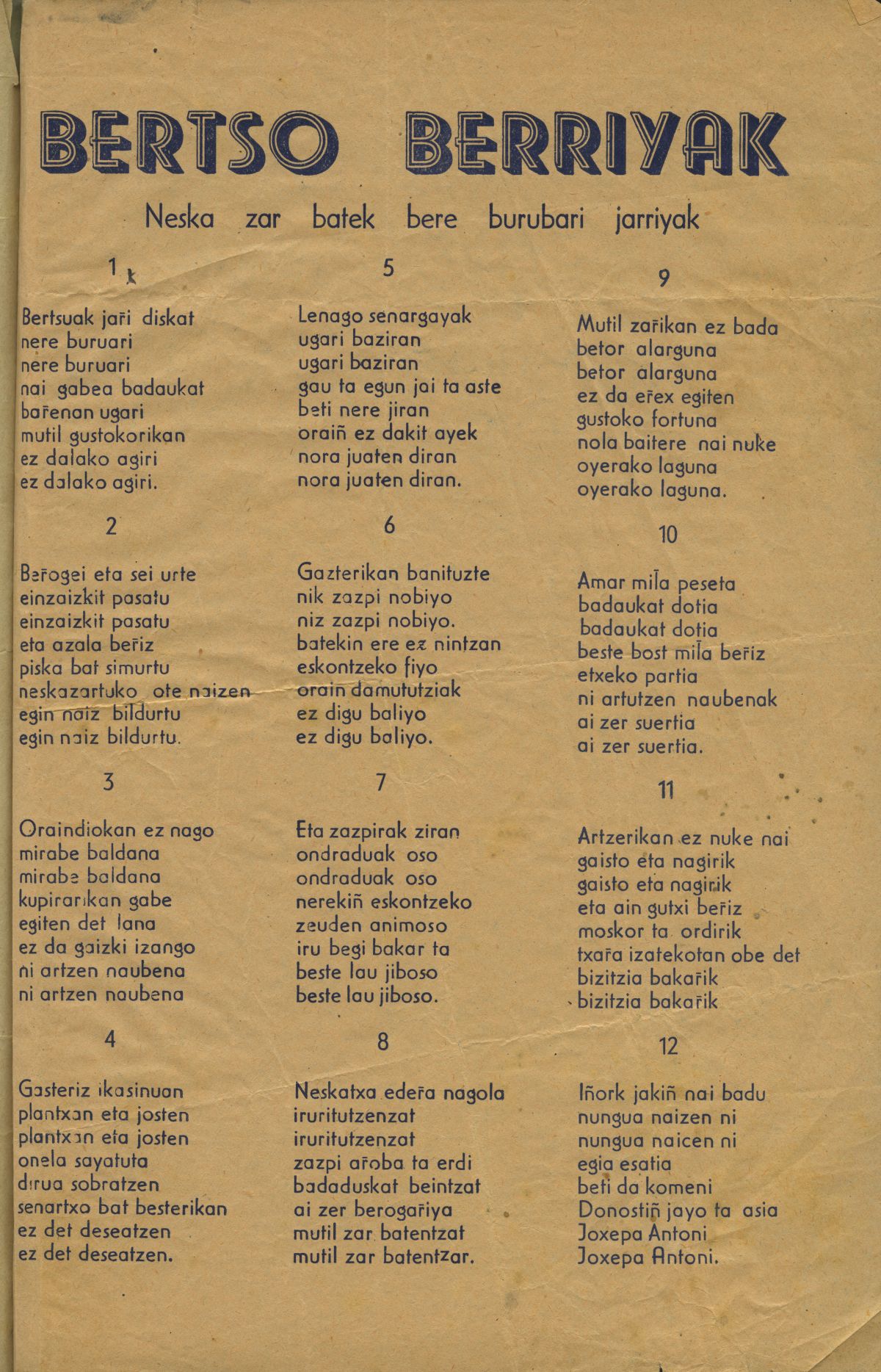 Bertso berriak neskazar batek bere buruari jarriak [Bertsoa] / Joxepa Antoni