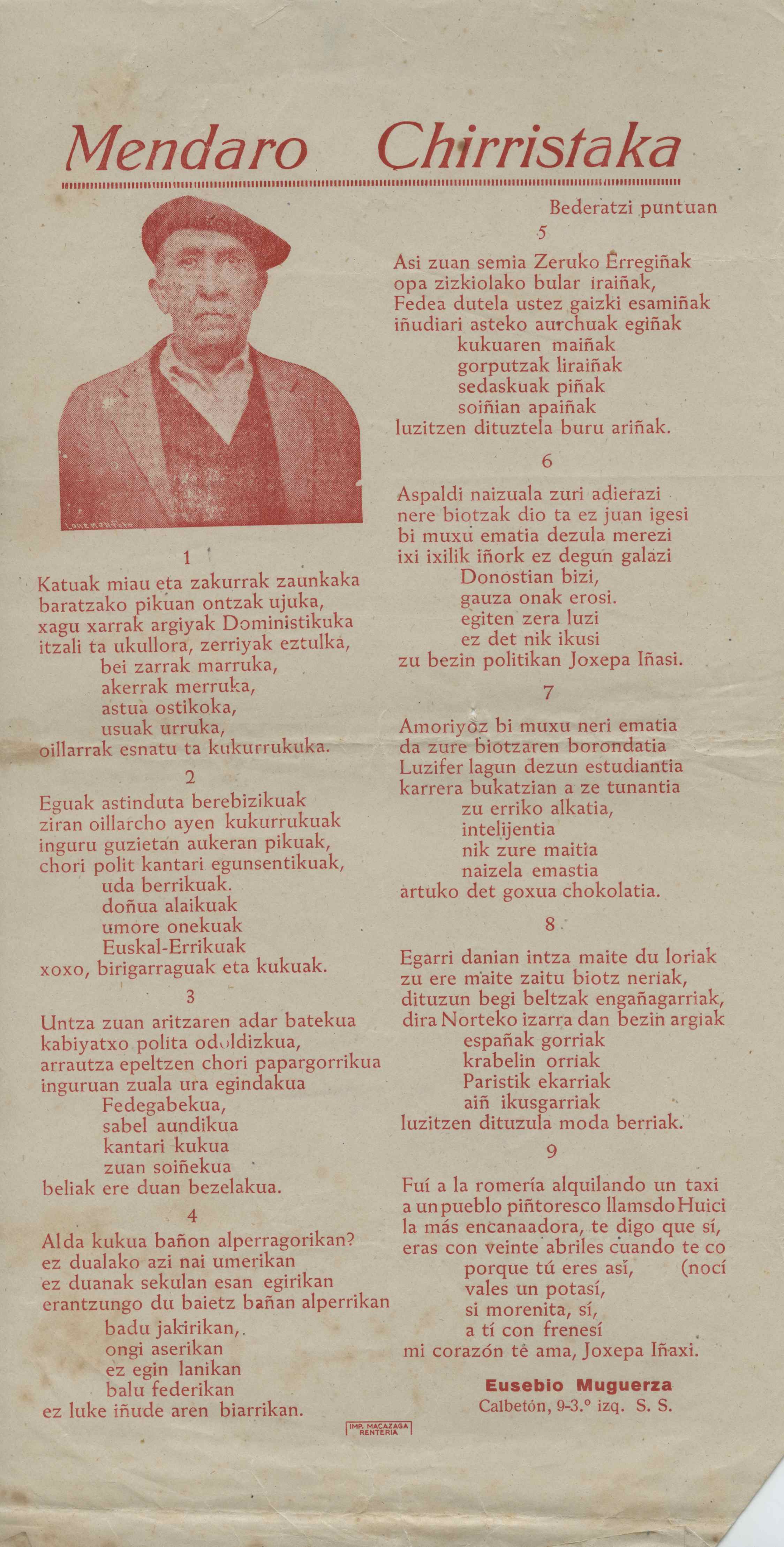 Mendaro Chirristaka : Katuak miau eta zakurrak zaunkaka [Bertsoa] / Mendaro Txirristaka