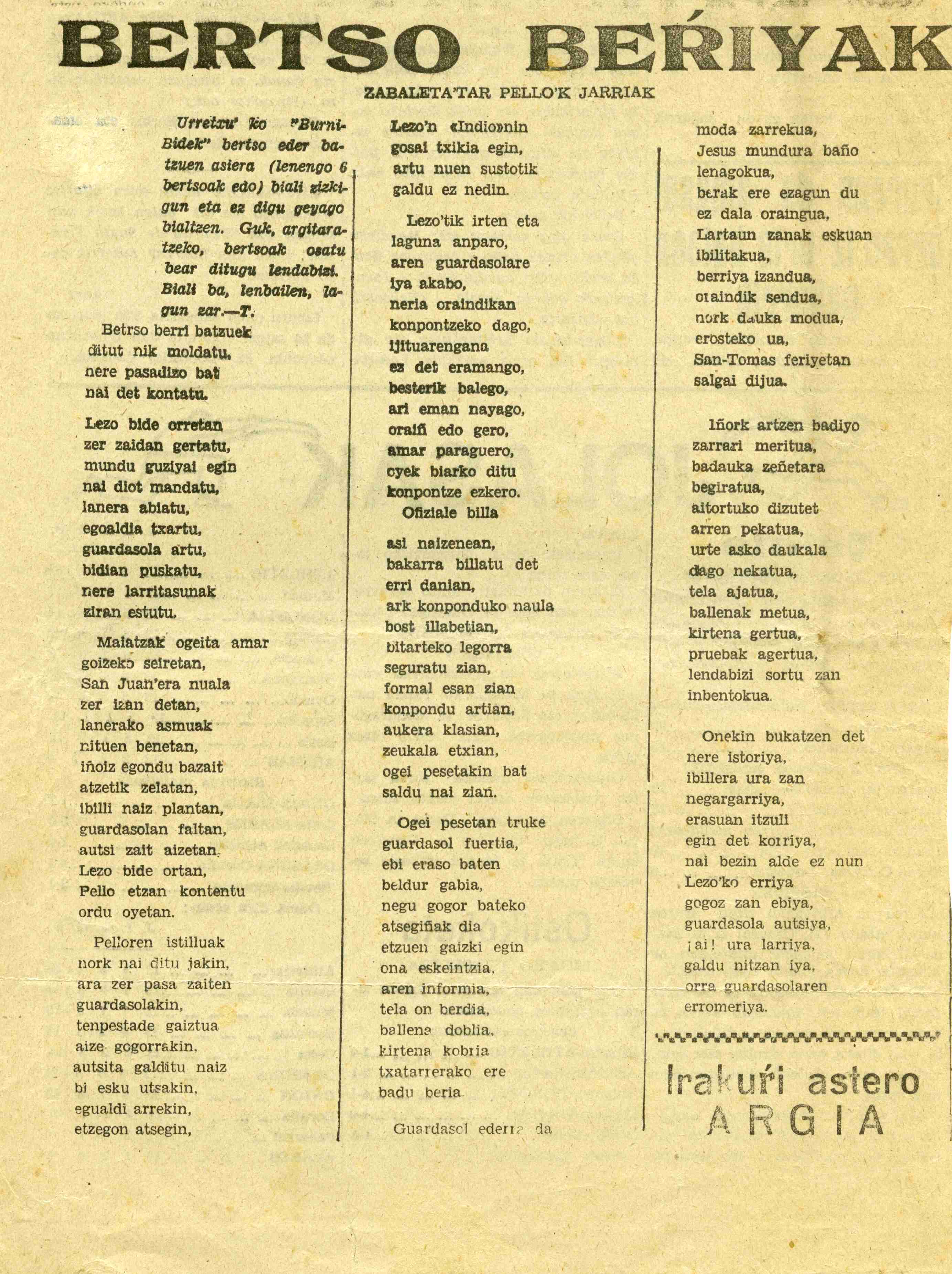Bertso berri batzuek ditut nik moldatu [Bertsoa] / Pello Zabaleta Lekuona