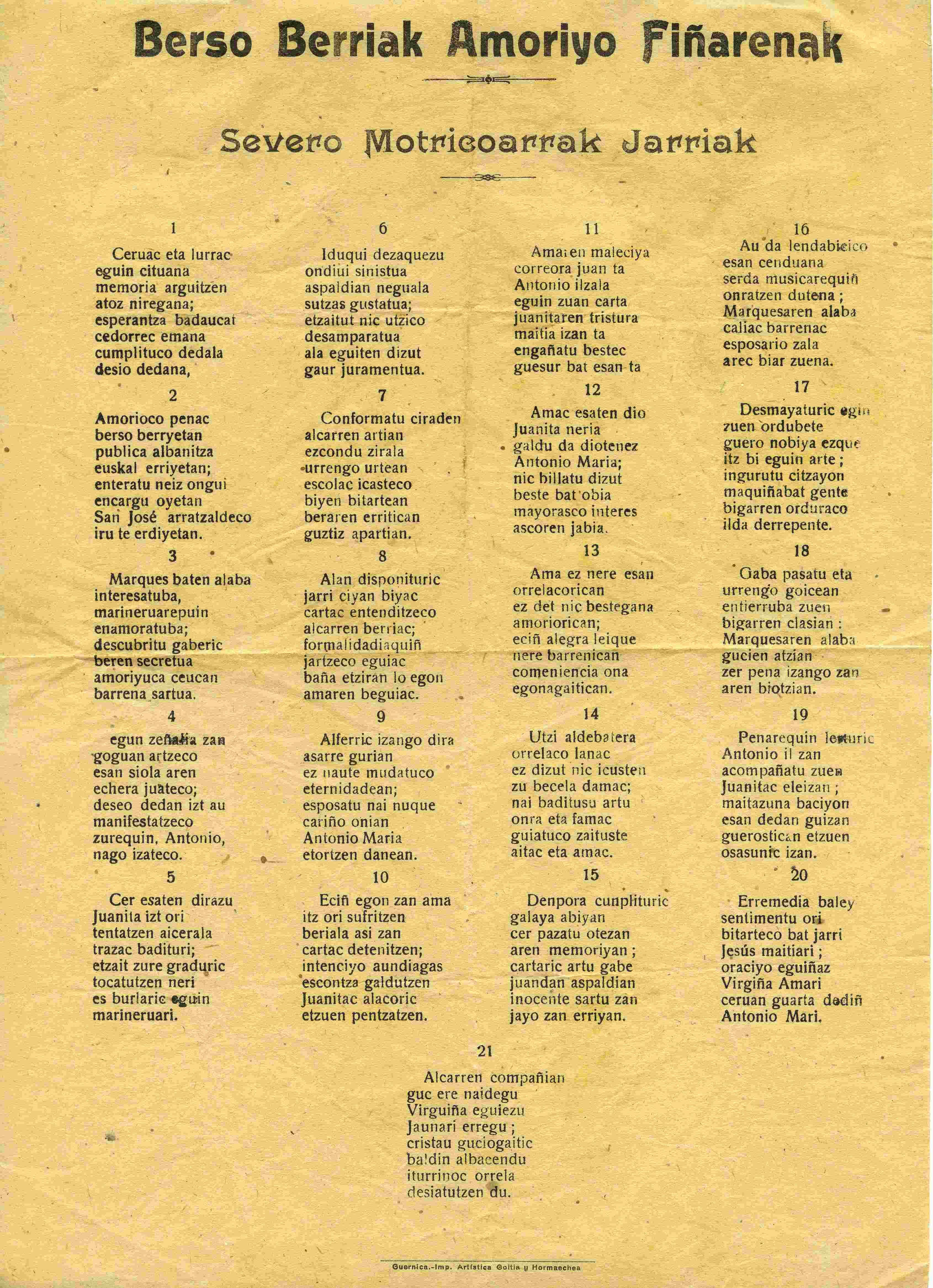 Markesaren alaba [Bertsoa] / Sebero Iturrino