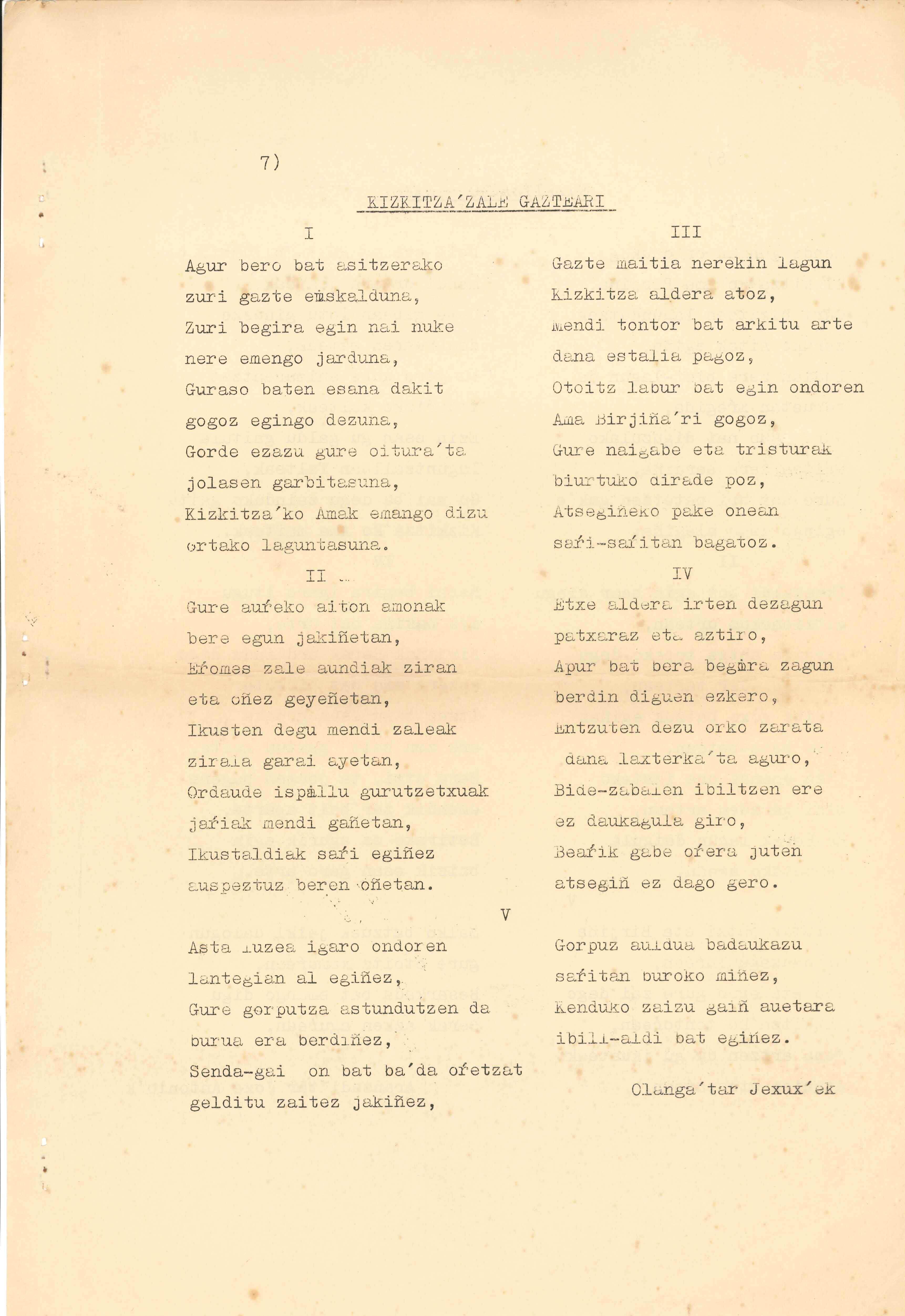 Kizkitza'zale gazteari [Bertsoa] / Jexux Olanga