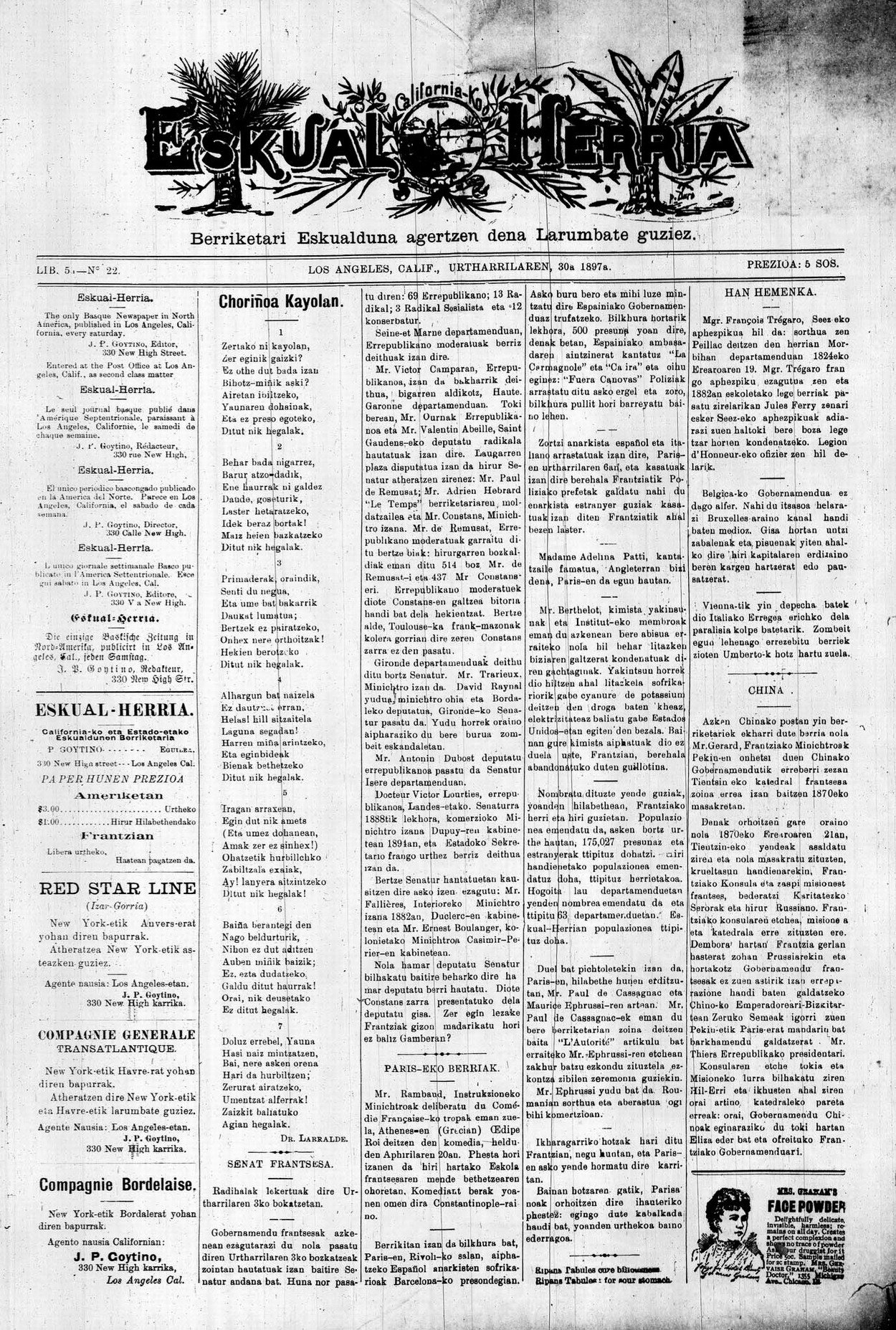 Txorinoa kaiolan [Bertsoa] / Jean Baptiste Larralde "Dr. Larralde"