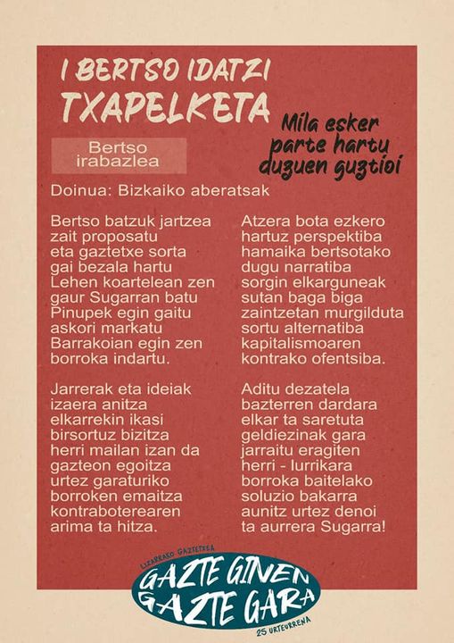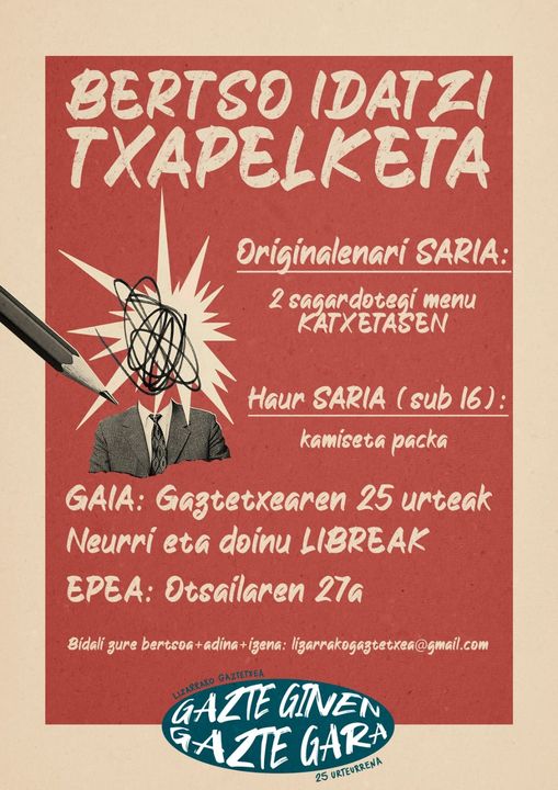 Bidali bertsoa, adina eta izena: lizarrakogaztetxea@gmail.com