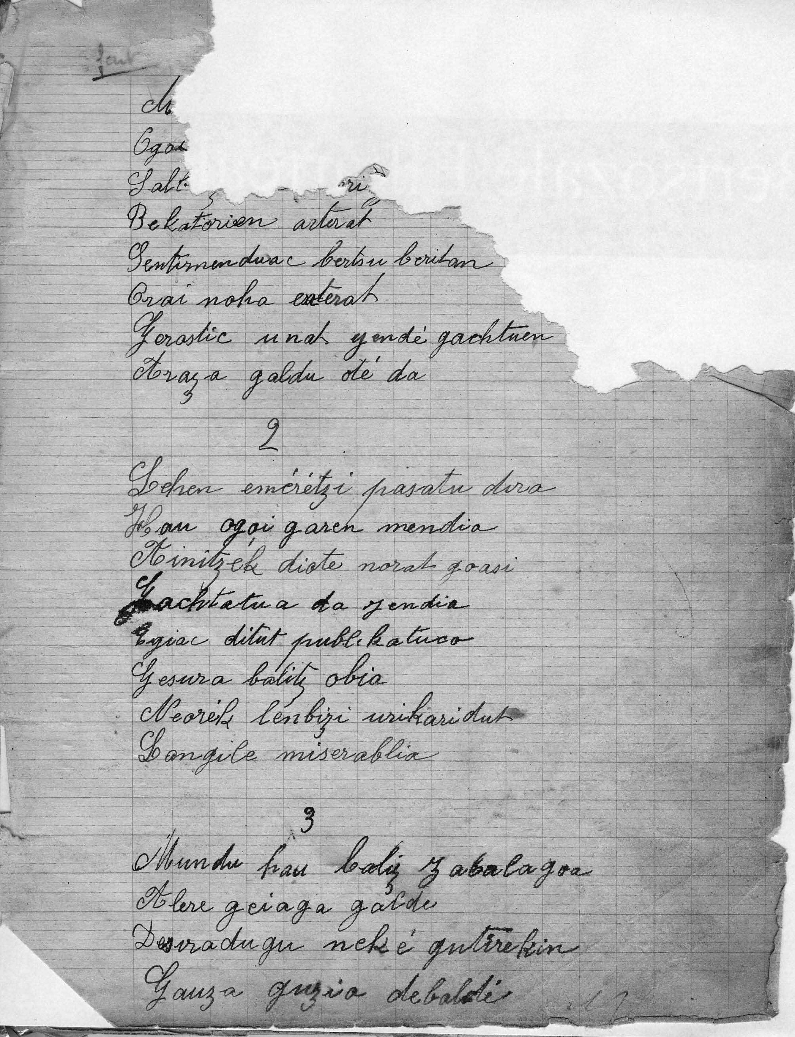 [bigarren bertsotik:] Lehen emeretzi pasatu dira hau ogoi garen mendia [Bertsoa]
