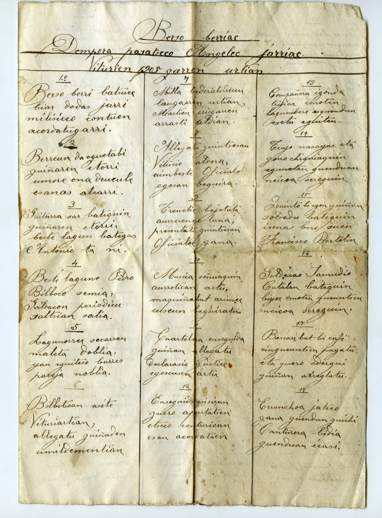 Bertso berriak denbora pasatzeko Anjelek jarriak [Bertsoa] / Anjel Asua Beitia