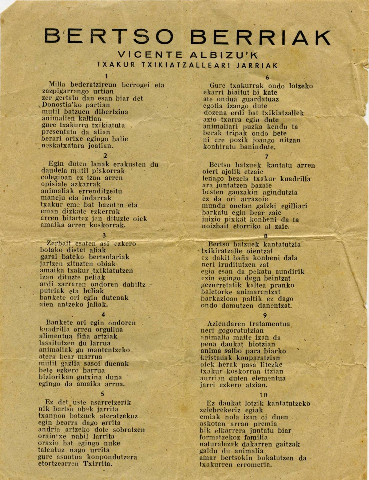 Bertso berriak Vicente Albizuk txakur txikitzaileari jarriak [Bertsoa] / Bizente Albizu