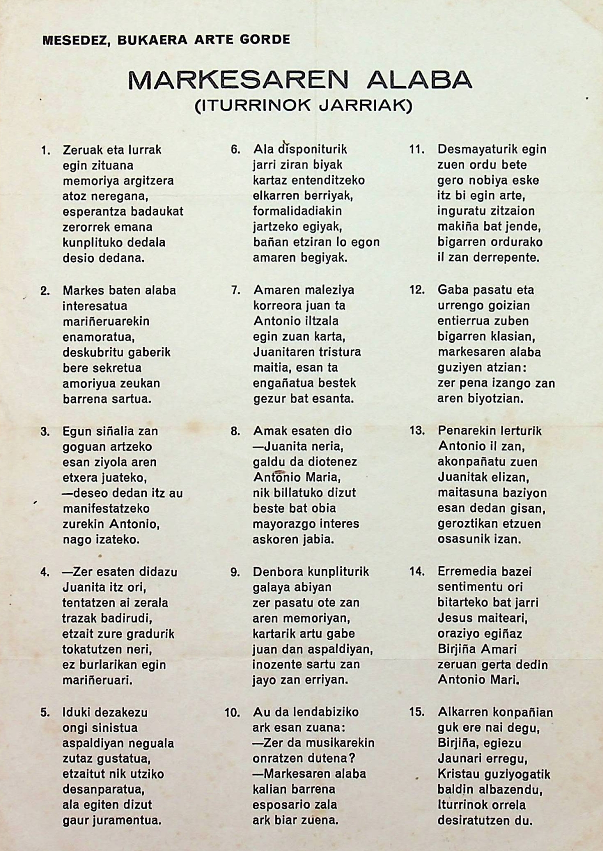 Markesaren alaba [Bertsoa] / Sebero Iturrino