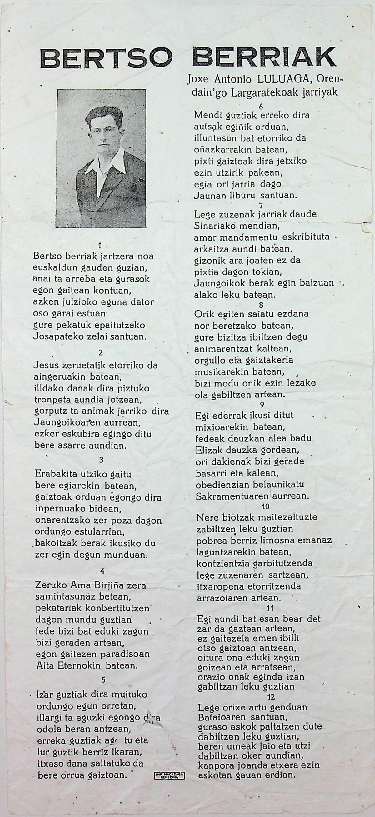 Bertso berriak [jartzera noa euskaldun gauden guztian] [Bertsoa] / Jose Antonio Luluaga "Pello Kirten"