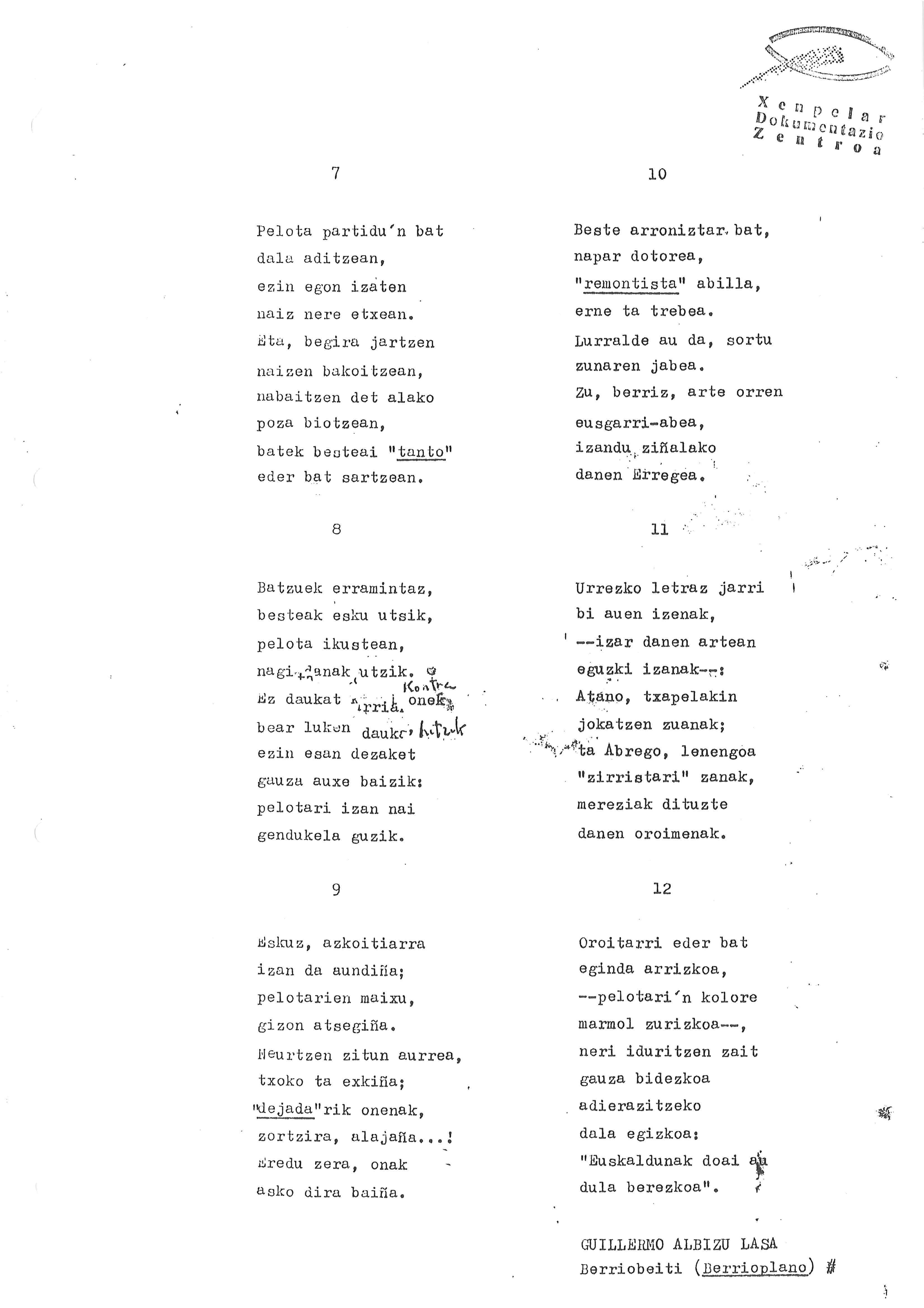 Bertso berriak, Guillermo Albizuk jarriak [Alkartasun bikain bat badu Gipuzkoak] [Bertsoa] / Gillermo Albizu
