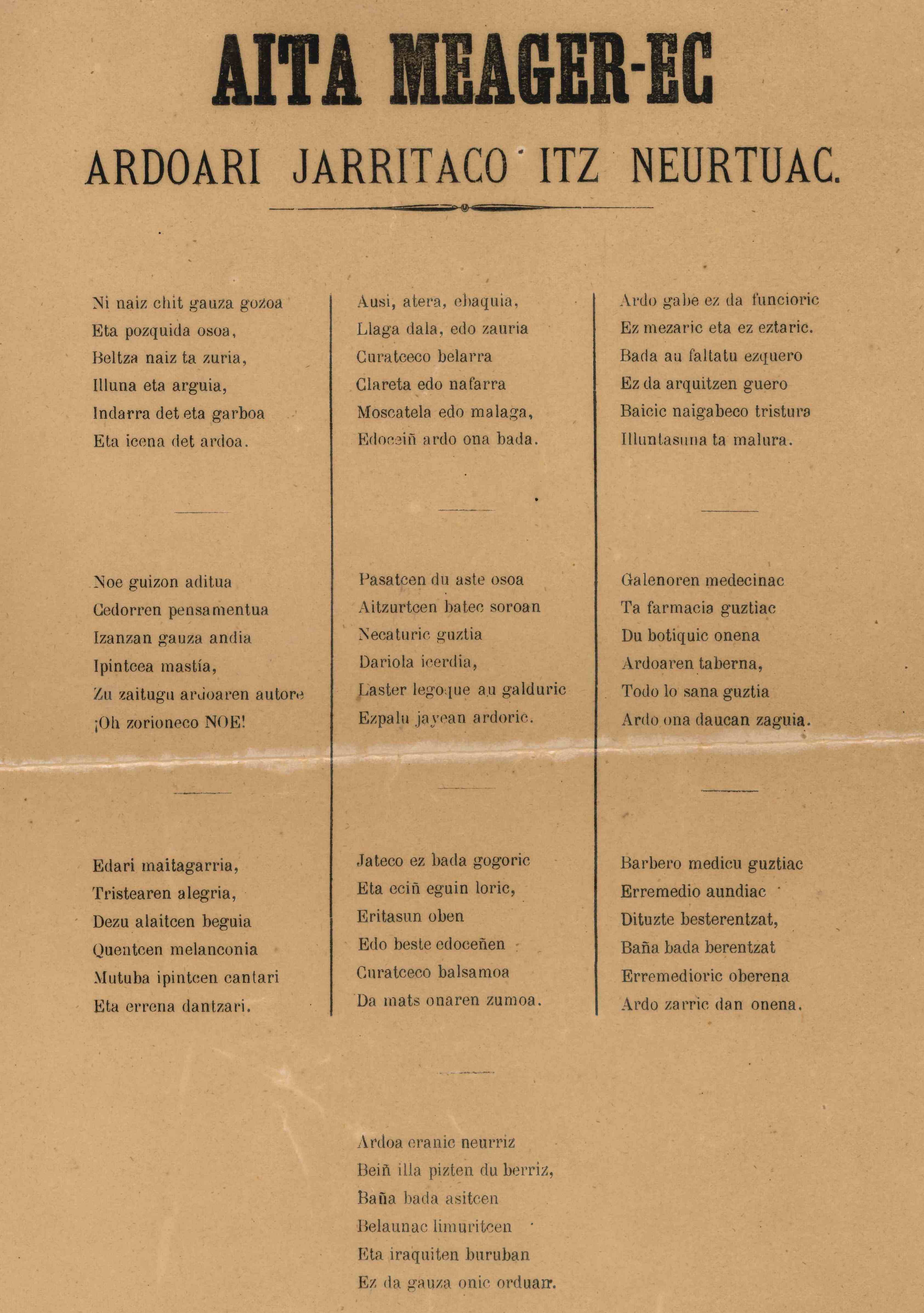Aita Meager-ec ardoari jarritako itz neurtuac [Bertsoa]