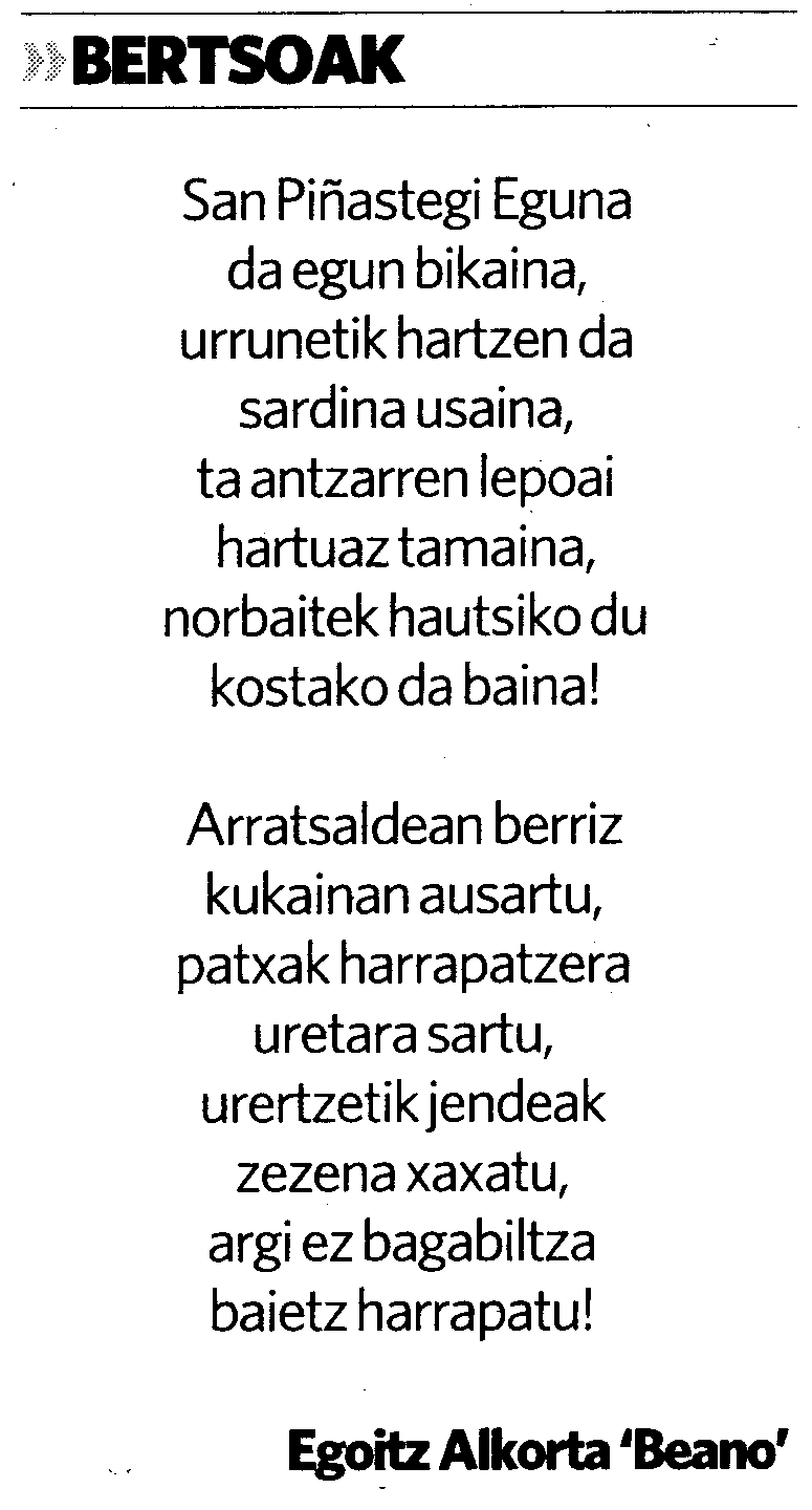 San Piñastegi Eguna da egun bikaina [Bertsoa] / Egoitz Alkorta