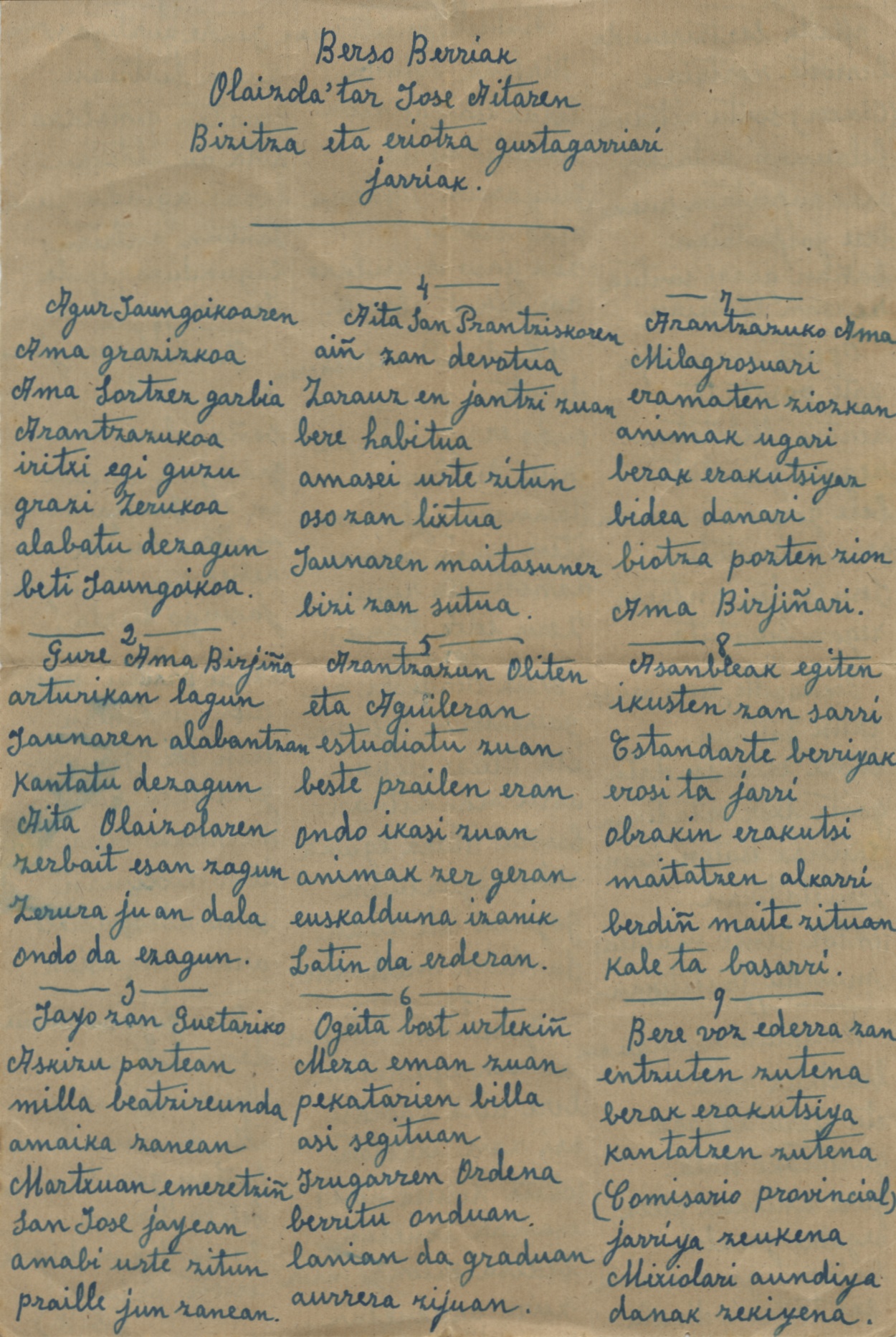 Bertso berriak Olaizola'tar Jose Aitaren bizitza eta heriotza gustagarriari jarriak [Bertsoa] / Justina Aldalur