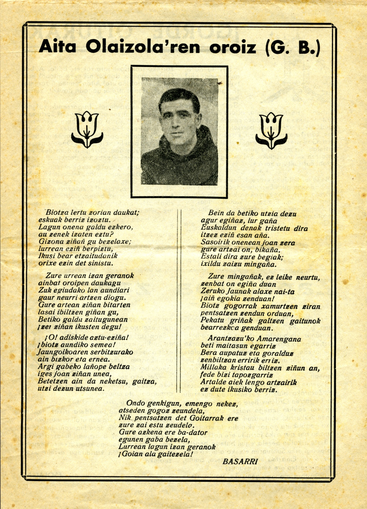 Aita Olaizola'ren oroiz (G.B.) [Bertsoa] / Iñaki Eizmendi "Basarri"