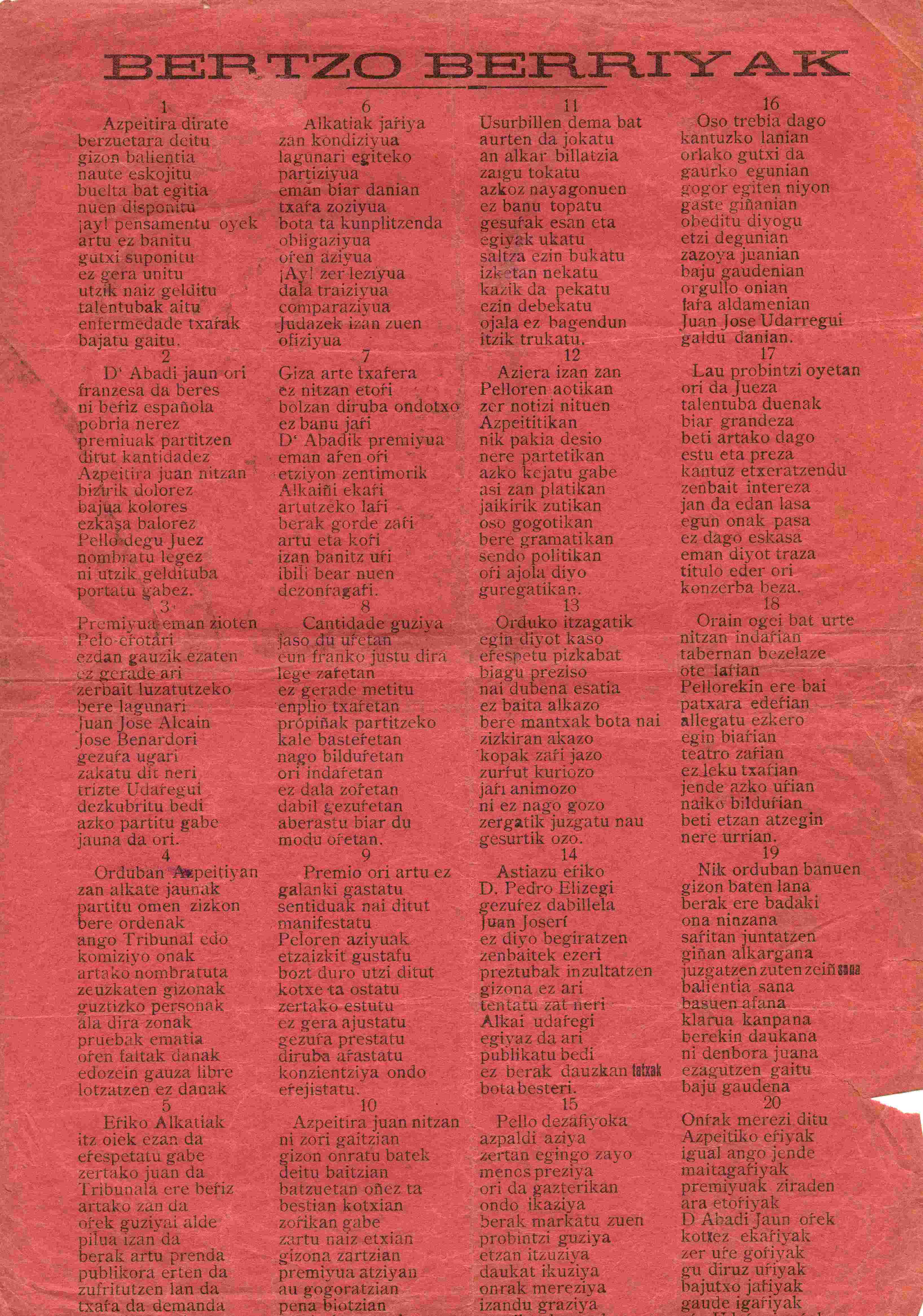 Bertso berriak [Azpeitira didate bertsoetara deitu] [Bertsoa] / Juan Jose Alkain "Udarregi"