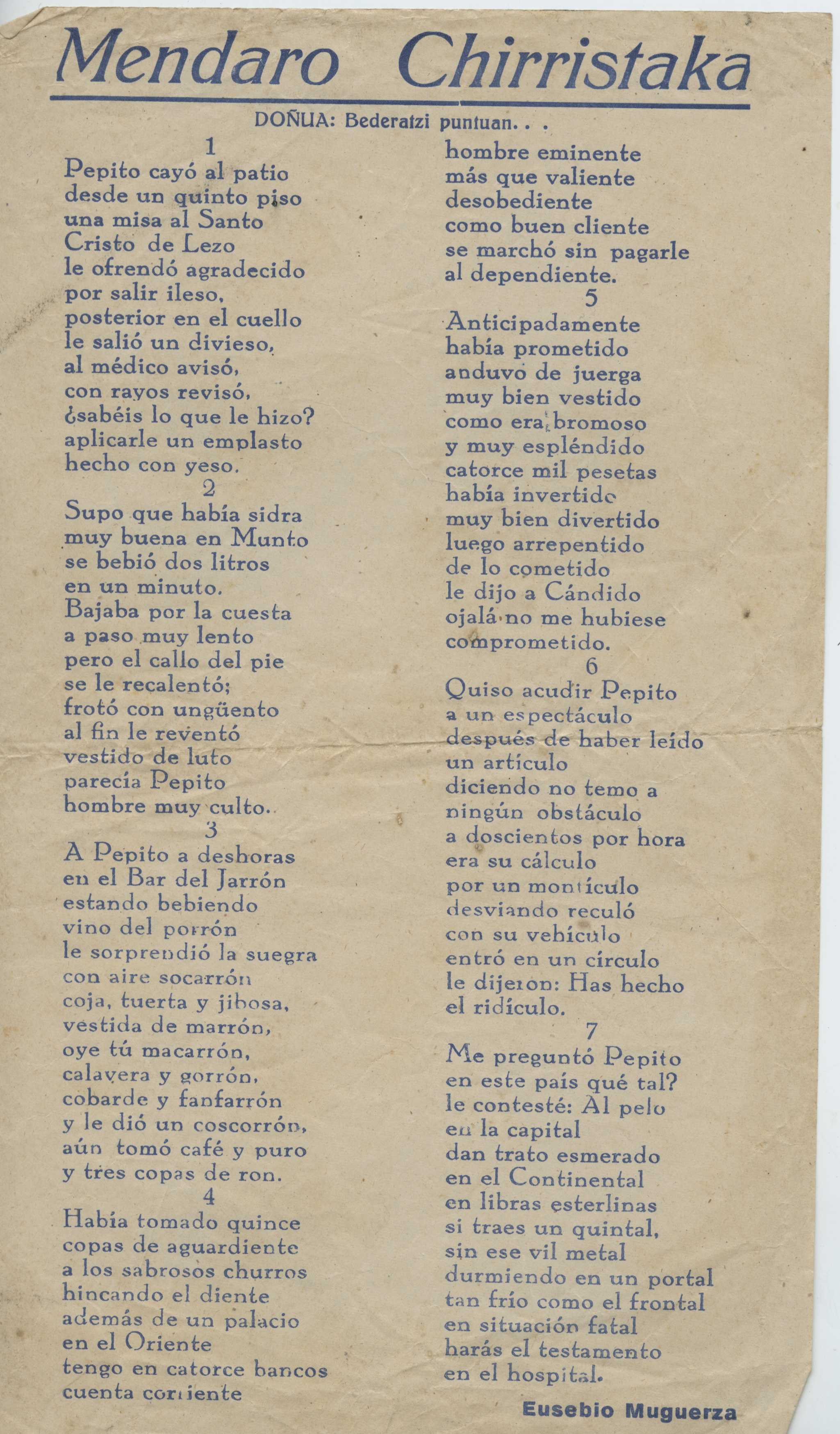 Mendaro Chirristaka : Pepito cayó al patio [Bertsoa] / Mendaro Txirristaka