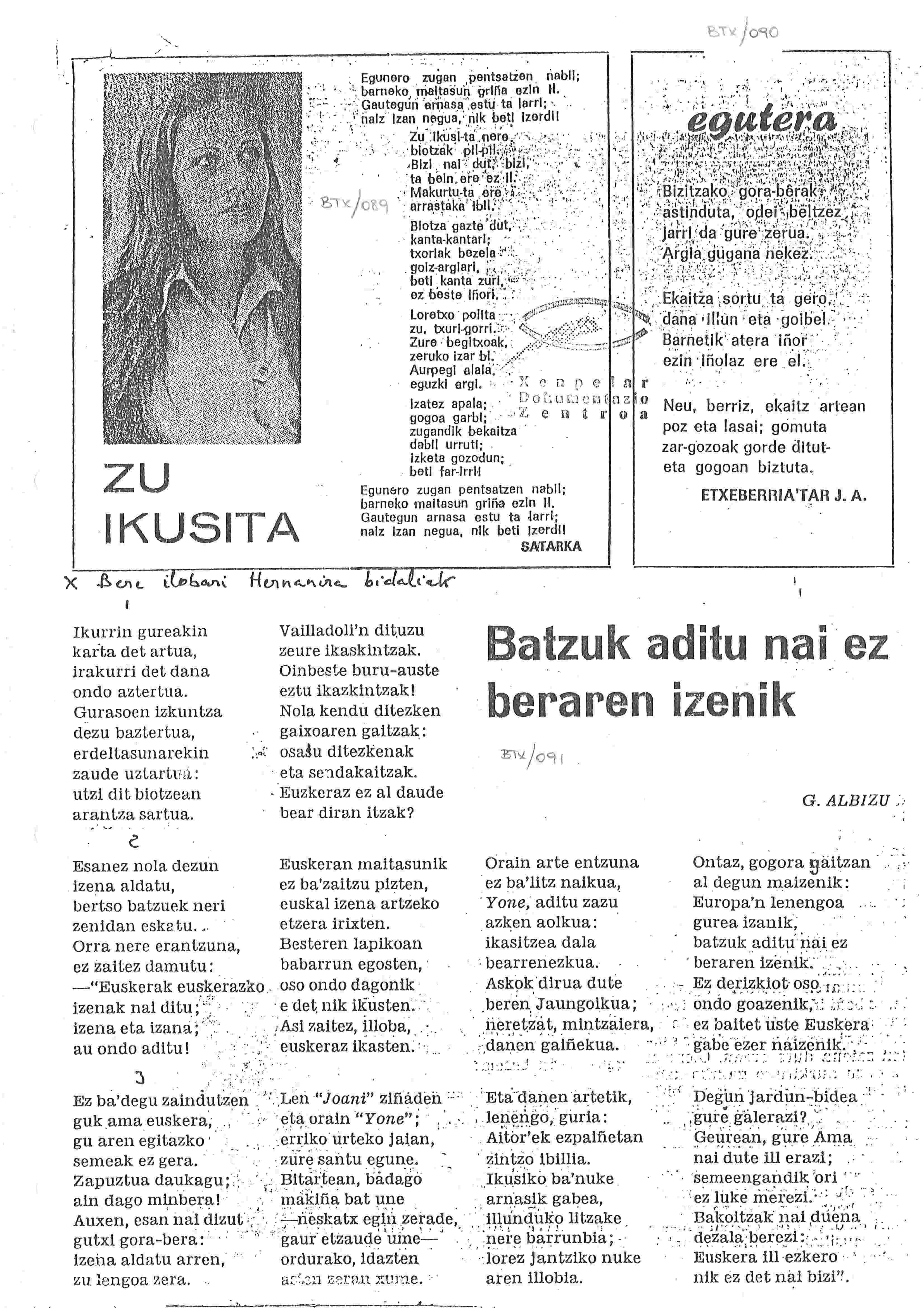 Batzuk aditu nai ez beraren izenik [Bertsoa] / Gillermo Albizu