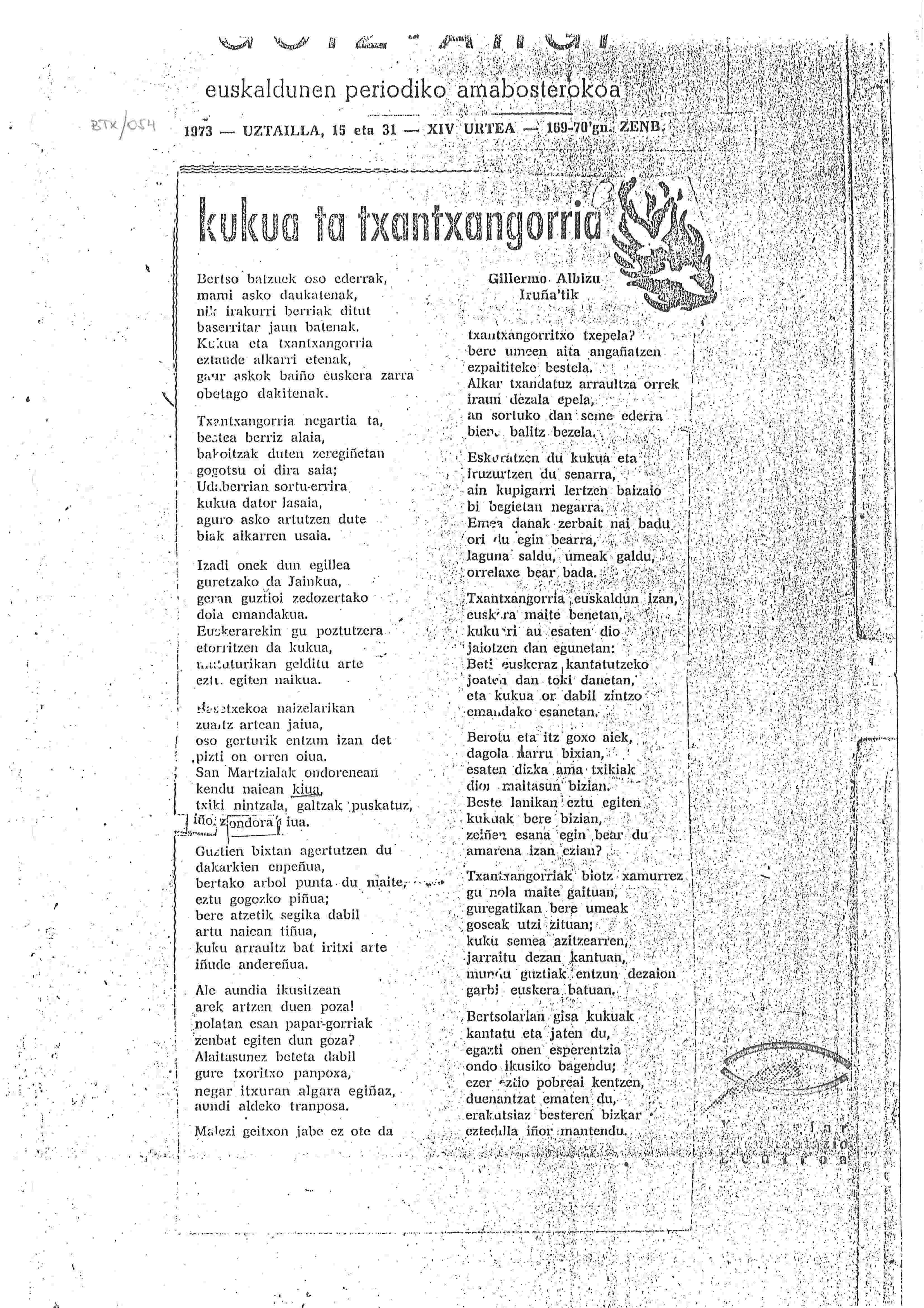 Kukua ta txantxangorria [Bertsoa] / Gillermo Albizu