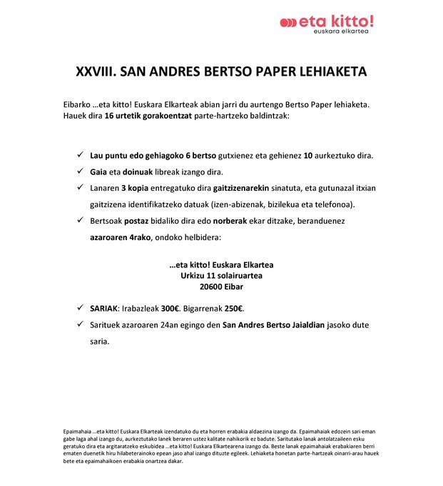 San Andres Bertso-Paper Lehiaketa (28. 2022. Eibar)