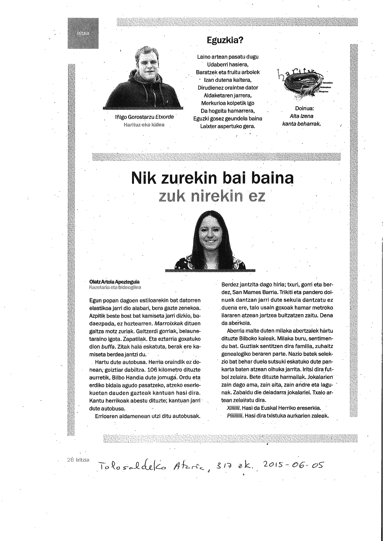 Tolosaldeko Ataria [Egunkaria] Argitalpen data: