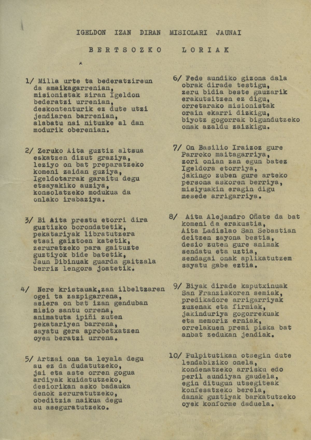 Igeldon izan diren misioilari jaunei bertsozko loreak [Bertsoa]