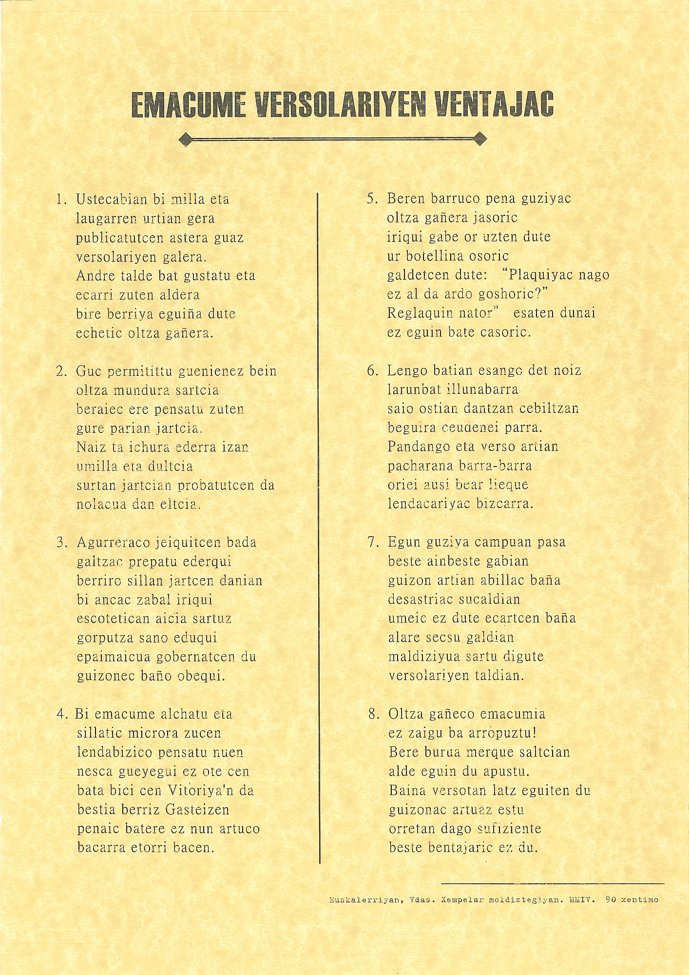 Euskalerriyan, Vdas. Xempelar moldiztegiyan. MMIV. 90 xentimo