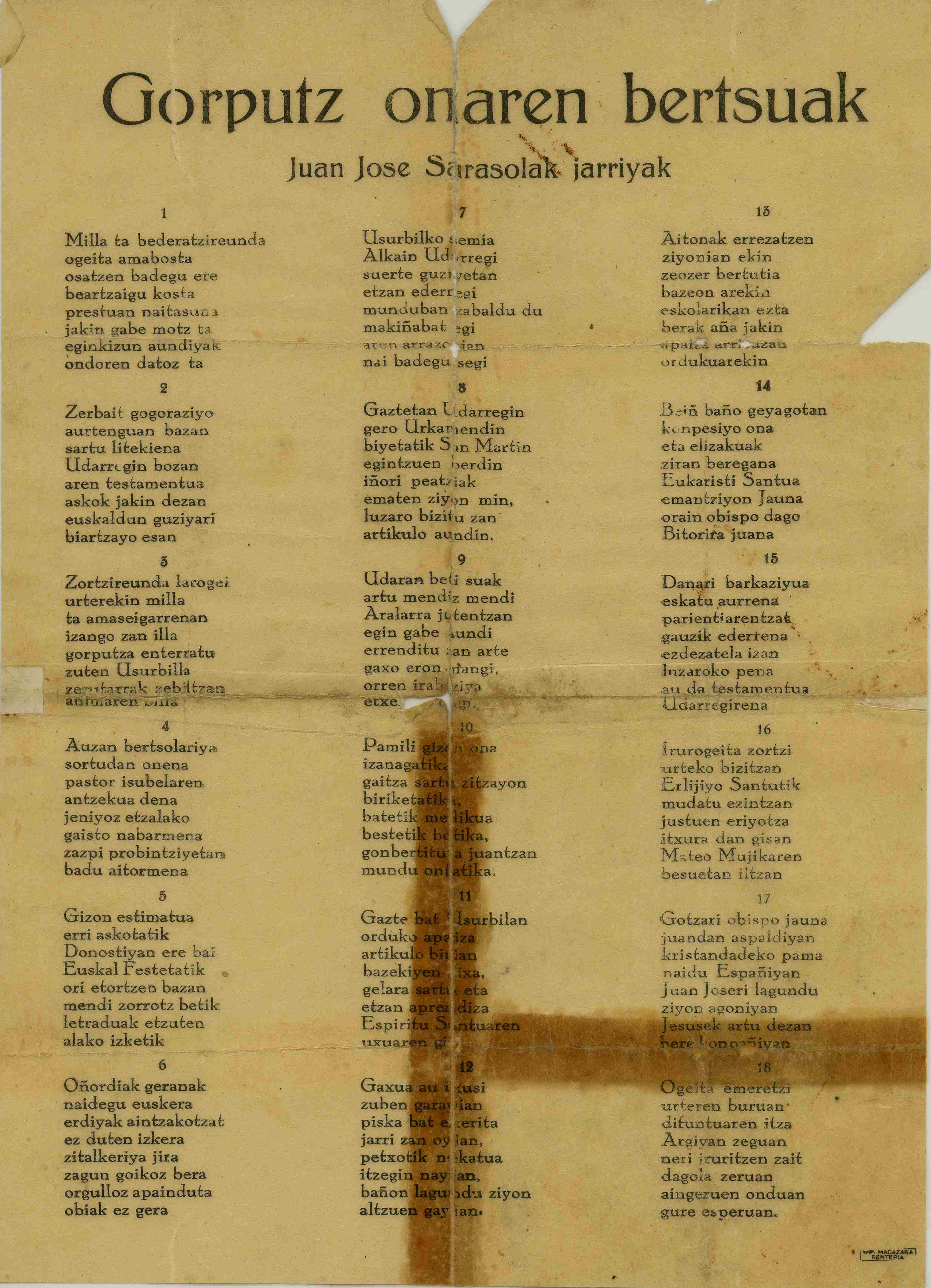 Gorputz onaren bertsuak, Juan Jose Sarasolak jarriyak [Bertsoa] / Juan Jose Sarasola "Lexo"