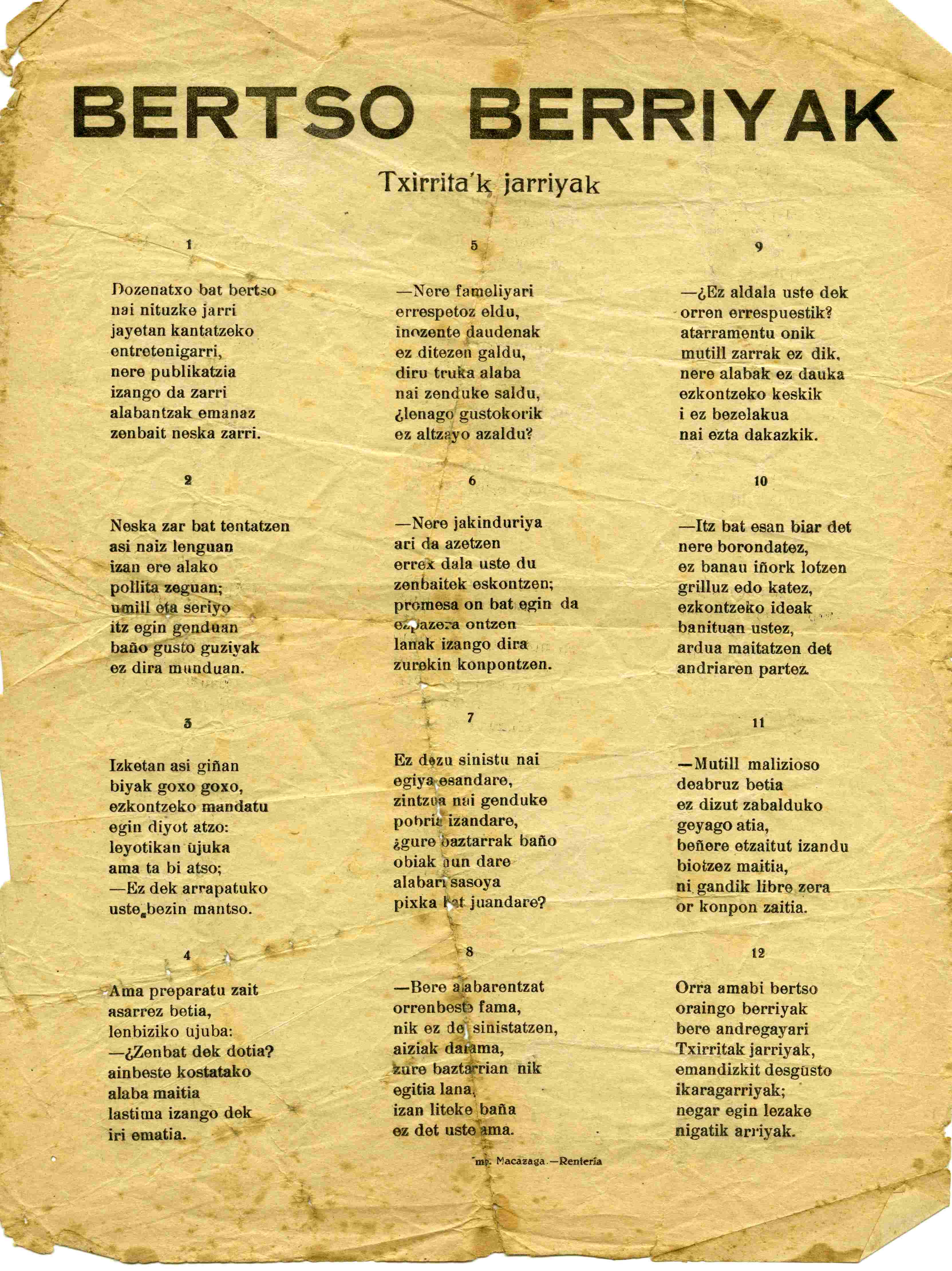 Bertso berriak Txirritak jarriak [Dozenatxo bat bertso nahi nituzke jarri] [Bertsoa] / Manuel Lujanbio "Txirrita"