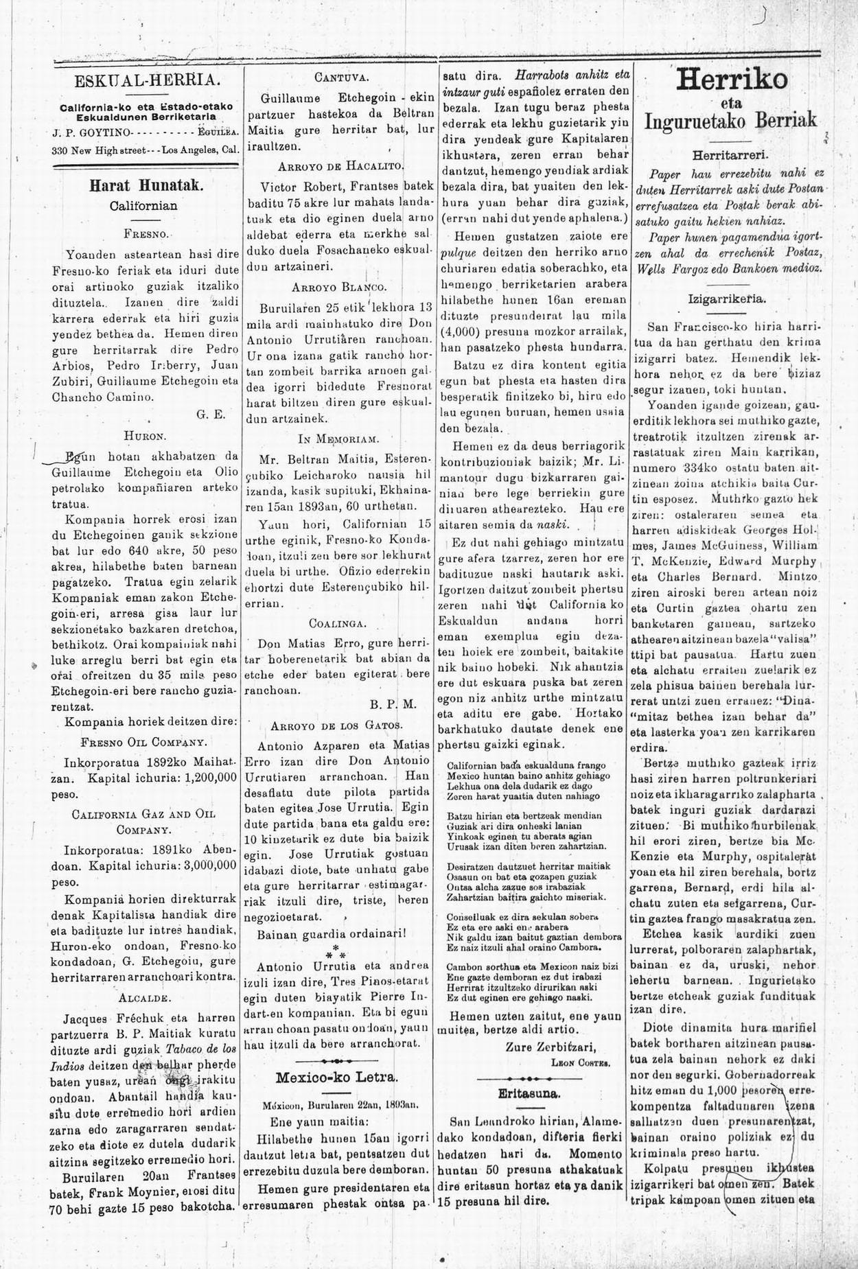 Californiako Eskual Herria [Aldizkaria] Argitalpen data: