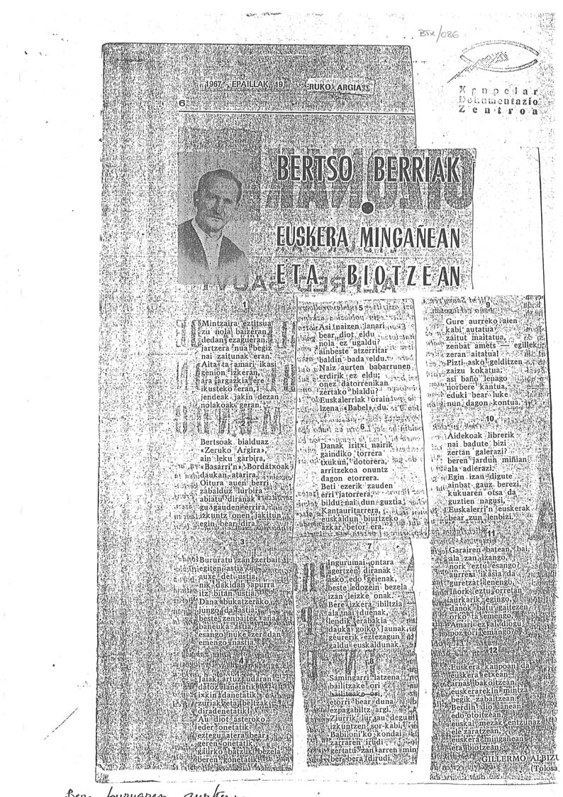Euskera mingañean eta biotzean [Bertsoa] / Gillermo Albizu
