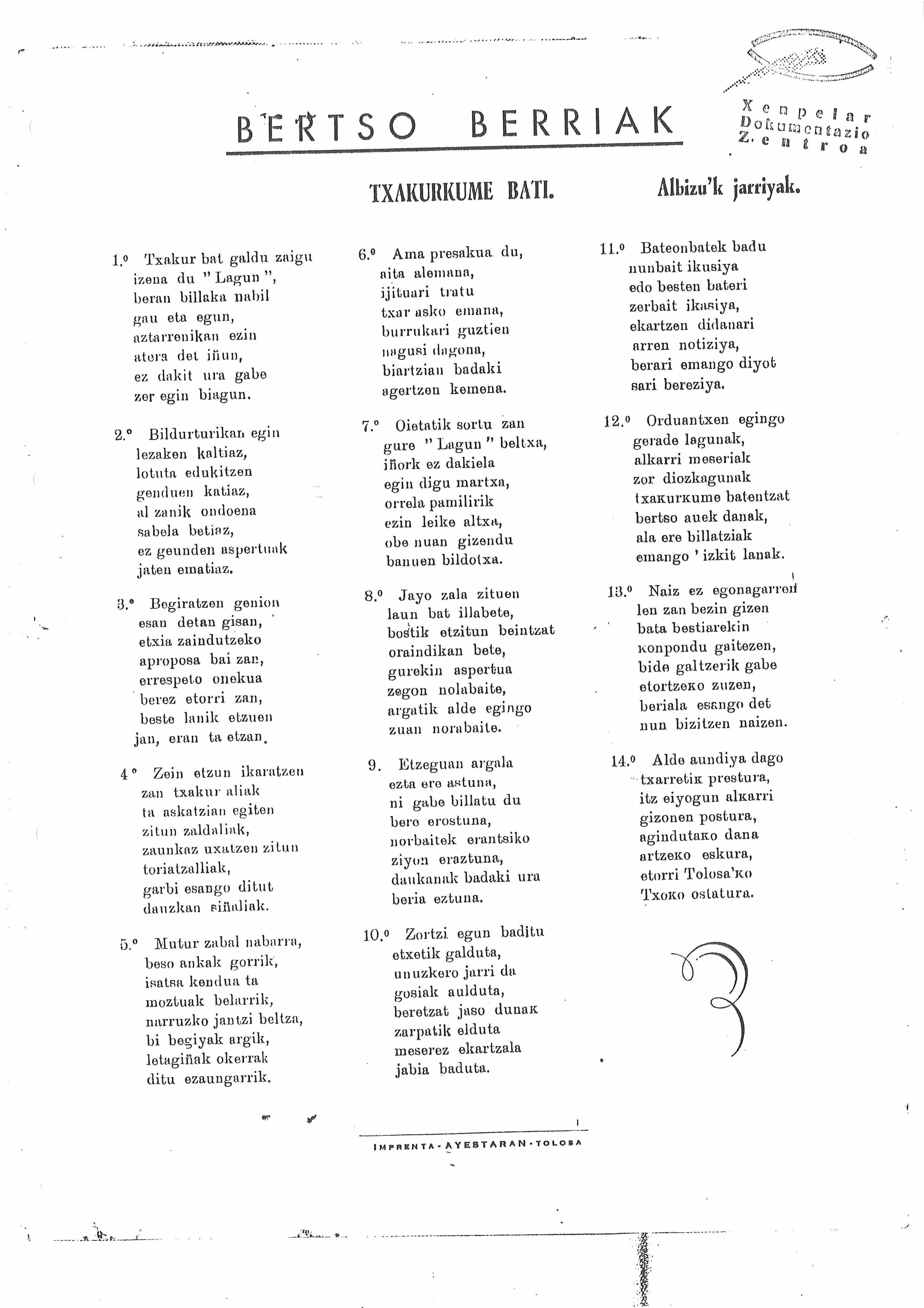 Txakurkume bati [Bertsoa] / Gillermo Albizu